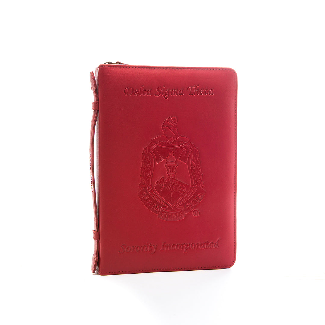 Protect your treasured Delta Sigma Theta ritual book with this Deluxe Leather Ritual Book Cover, crafted from genuine soft leather for a luxurious feel and long-lasting durability. The rich red color and elegant embossing make it a timeless piece for any devoted soror.