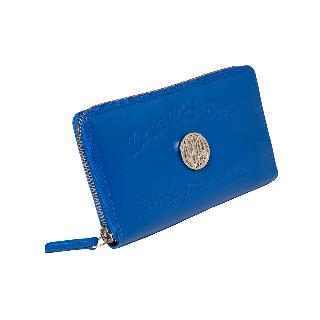 Crafted from soft, premium leather, this Zeta Phi Beta wallet features rich embossing, a signature letter medallion, and a matching custom zipper pull for a refined finish. Compact yet spacious, it includes:
